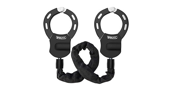 Wie der Name bereits verrät ähneln Handschellenschlösser der Handfessel wie sie bei der Polizei in Gebrauch ist. Handschellenschösser gibt es mit verschieden vielen Bindegliedern, was die Länge betrifft, sowie in Verbindung mit einem Kabel. Besonders die teurere Variante mit Manschetten an beiden Enden und stählernem Bindeglied ist sehr robust und schreckt Diebe bereits optisch ab. Der Nachteil dabei ist aber, dass dieses Schloss schwer ist und auch nicht sehr flexibel, da man ein passendes dünnes Objekt wie etwa einen Fahrradständer finden muss. Das Handschellenschloss in Kombination mit einem Kabel ist deutlich günstiger, leichter und einfacher an Gegenstände zu befestigen, liefert dafür aber weniger Sicherheit gegenüber Langfingern.