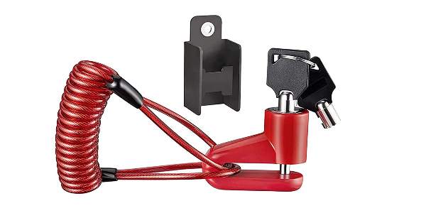 Mit dem gleichen Prinzip wie für den „großen Bruder“, den Motorroller, wird auch das Bremsscheibenschloss für den E-Scooter direkt an der Scheibenbremse montiert. Der Haken wird in eines der Löcher der Bremse montiert und an anderer Seite mit einem festen Gegenstand verbunden. Die Scheibenbremse fixiert somit den Scooter an ein Objekt und blockiert zugleich das Rad. Dank beider Sicherheitswege ist das Bremsscheibenschloss ein gutes Schloss für den E-Scooter. Zwar ist der Draht zum befestigen an einem Gegenstand sehr dünn und leicht zu kappen, doch das Schloss an der Scheibenbremse liefert einen zweiten Widerstand und macht somit den Diebstahl sehr aufwändig und unattraktiv. Zwei weitere große Pluspunkte neben der Sicherheit sind auch der geringe Preis, ebenso wie das geringe Gewicht.